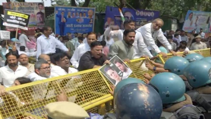 New Delhi: The Congress Party has launched a massive protest against the Central government and investigative agencies. The protest follows the ED filing a chargesheet against Congress leaders Rahul and Sonia Gandhi in connection with the National Herald. Protests have been organised across the country, with several prominent leaders at the forefront.